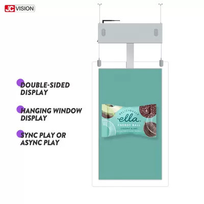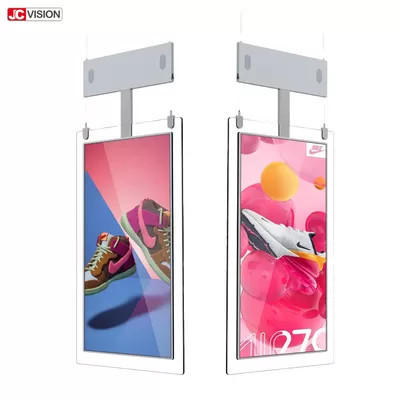 استند آویزان از سقف دیجیتال فوقالعاده باریک با نمایشگر دوطرفه - JCVISION برای مراکز خرید و فروشگاها